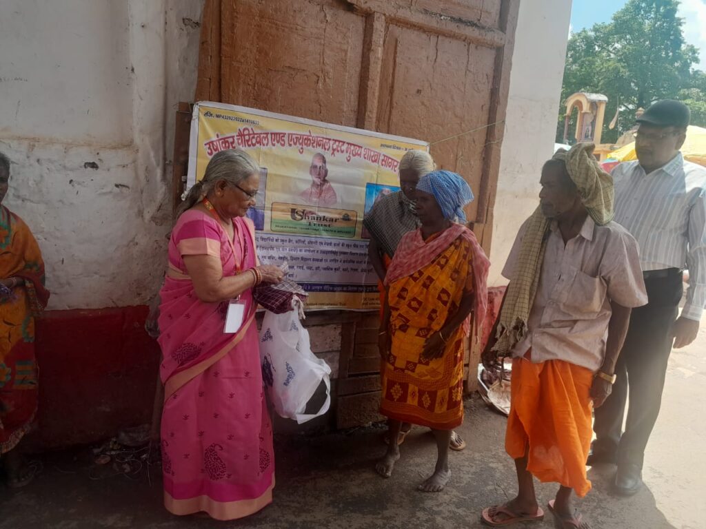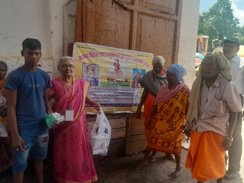 आज दिनांक 13/09/25 को उषांकर चेरिटेबल व एजुकेशनल ट्रस्ट मुख्य शाखा जिला सागर की ओर से स्वर्गीय श्री शंकर लाल सोहाने जी की पुण्यतिथि के अवसर पर स्थान दंतेश्वरी मंदिर, जगदलपुर (छत्तीसगढ़) में सदस्य श्रीमती आशा सोहाने जी द्वारा सदस्य स्वाति खनताल, दीपिका गुप्ता , दीपक गुप्ता एवं शैलूका के सहयोग से असहाय एवं निशक्त जनों को 11 गमछे और खाने के लिए केले वितरित किए गए ।