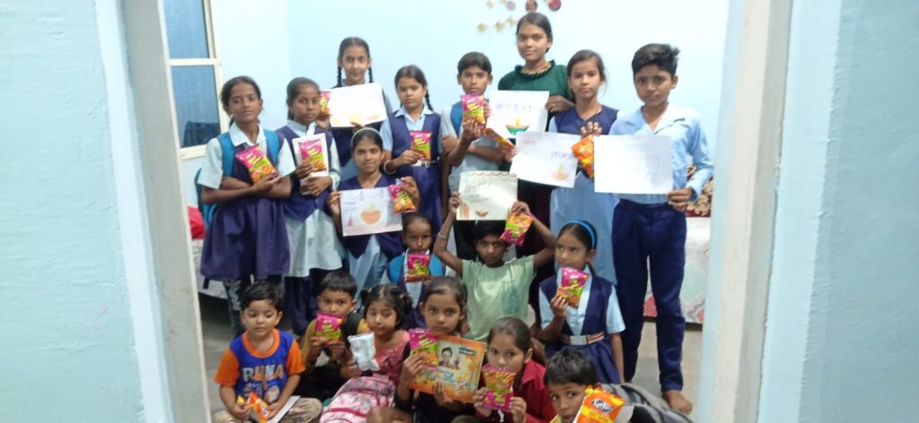 ऊषांकर चैरिटेबल एंड एजुकेशनल ट्रस्ट मुख्य शाखा सागर की ओर से दतिया में चल रही निःशुल्क कोचिंग पर दिनांक 13.10.2025 सभी बच्चों ने दीपावली के कार्ड बनाए और सभी बच्चों को कुरकुरे दिए गए