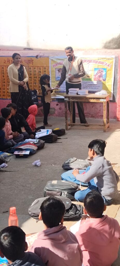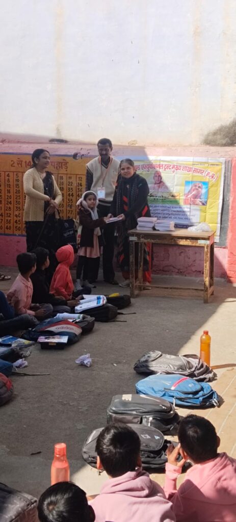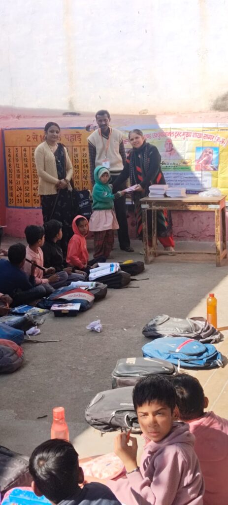 इस कार्यक्रम के अंतर्गत ट्रस्ट द्वारा विद्यार्थियों को शैक्षणिक सहयोग प्रदान करते हुए 60 कॉपियाँ एवं 60 पेन वितरित किए गए, जिससे बच्चों में शिक्षा के प्रति उत्साह एवं प्रसन्नता देखने को मिली।
