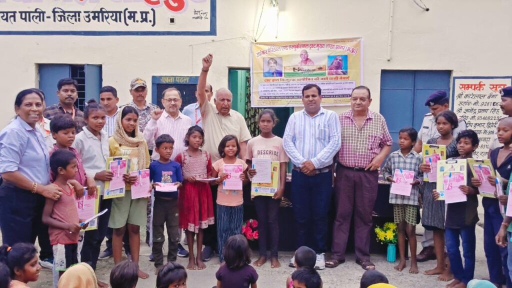 आज दिनांक 16/06/2025 को उषांकर चेरिटेबल एंड एजुकेशनल ट्रस्ट मुख्य शाखा जिला सागर की ओर से स्व.श्री पुरूषोतम दास सोहाने की स्मृति आठवें कार्यक्रम का आयोजन ट्रस्ट की अध्यक्ष सु श्री सविता सोहने जी के द्वारा समाज सेवक रवि द्विवेदी श्री S.K. नामदेव (सहायक संचालक महिला एवं बाल विकास) ग्राम के सम्मानजनक श्री बिकास जैसवाल,पूर्व उपसरपंच श्री राकेश जैसबल, श्री K.P. महिंद्रा,श्री रवि मिश्रा (रिटायर एसडीओ) ग्रामपंचायत सचिव संदीप दुबेदी के सहयोग से ग्राम शाहपुर जनपद पंचायत पाली जिला उमरिया मे किया गया कार्यक्रम मे गांव के लगभग 100 महिला,पुरुष और बच्चें उपस्थित रहे जिनको ट्रस्ट की ओर से महिलाओं को 12 साड़ी, 25 जोड़ी चप्पल, पुरुषों को 10 गमछे,20 जोड़ी चप्पल एवं बच्चों को पढ़ाई से संबंधित स्टेशनरी जैसे 15 क्लिप बोर्ड,15 पेंटिंग बुक, 15 पेंटिंग कलर,25 कॉपी,25 पेन का वितरण किया गया खाद्य सामग्री में सभी बच्चों को टॉफी, आम का वितरण किया गया कार्यक्रम मे ट्रस्ट के सदस्य श्री मदन लाल मरावी,दिलीप साकेत, नागेन्द्र शर्मा, धनराज परस्ते, अजित यादव, रवि कुमार निःशुल्क सेवादार रणवीर सिंह, महेश साहू, सुखदेव सिंह उपस्थित रहे ट्रस्ट परिवार सभी को धन्यवाद देता है🙏