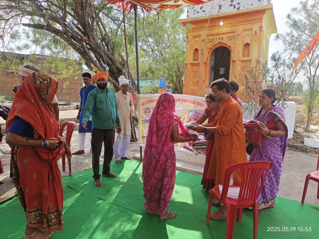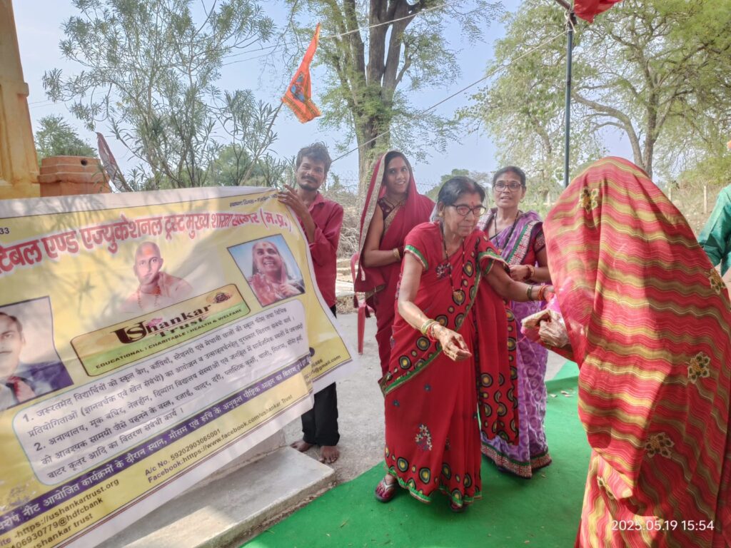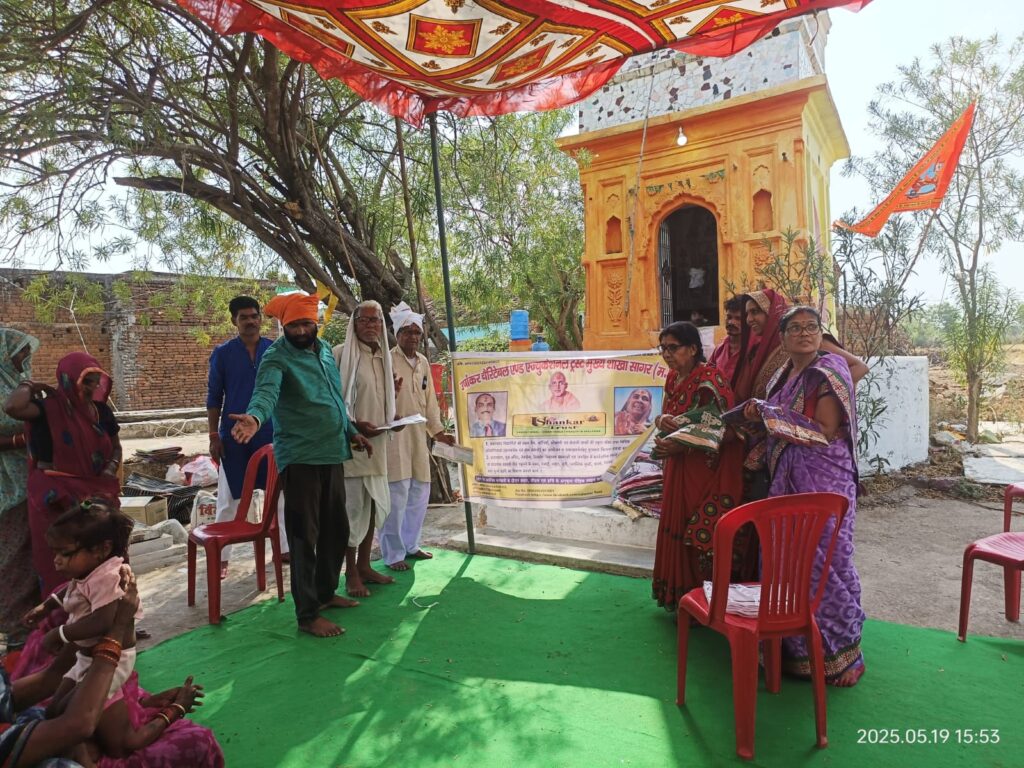 आज दिनांक 19/05/25 को उषाशंकर चैरिटेबल एंड एजुकेशनल ट्रस्ट की ट्रस्टी श्रीमती सिम्पल सेठ एवं सुरेंद्र सेठ कैंप प्रभारी पूना के द्वारा अपने मध्य प्रदेश प्रवास के दौरान जिला छतरपुर, ग्राम रामपुर (कुर्रा) के महिला पुरुषों को एकत्र कर कार्यक्रम आयोजित किया गया। आयोजित कार्यक्रम में गर्मी से बचाव संबंधी जानकारी देते हुए अधिक से अधिक बच्चों की शिक्षा में ध्यान देने की समझाइश दी गई। एवं गांव में साफ सफाई रखने ओर मिल जुल कर रहने के संबंध में भी समझाइश दी गई। कार्यक्रम के दौरान आर्थिक रूम से कमजोर 29 महिलाओं को साड़ी व 24 पुरुषों को गर्मी से बचाव हेतु गमछे दिए गए। ट्रस्टी सिम्पल एवं सुरेंद्र सेठ द्वारा उपस्थित जनों को स्वयं के व्यय पर मिठाई, कचौड़ी, नमकीन के पैकेट स्वल्पाहार में वितरित किए गए। कार्यक्रम में राम नगर के गणमान्य नागरिक सहित मुख्य रूप से बिहारी लाल गुप्ता जी, जानकी बाई, राजेंद्र एवं रचना सेठ, रेखा गुप्ता , सुनील , भविष्य, गुलज़ारी लाल जी , लखन लाल, रंजना , नारायण लोधी, छुट्टन विश्वकर्मा, दयाराम वंशीवढ़ाई , हरेंद्र सिंह, सहित अन्य गणमान्य नागरिक उपस्थित रहे । ट्रस्ट परिवार कार्यक्रम में उपस्थित सभी जनों का धन्यवाद ज्ञापित करता है।🙏