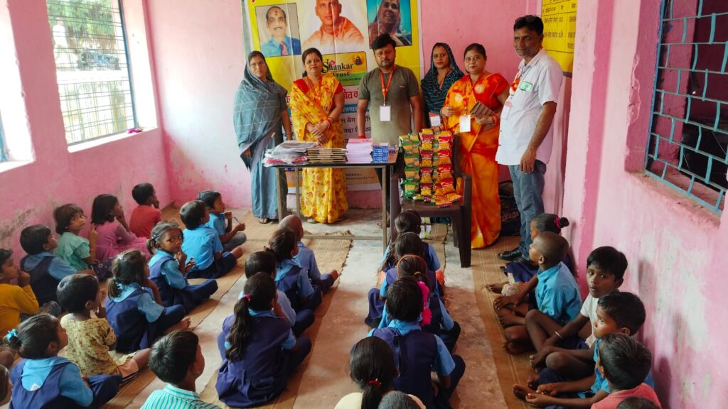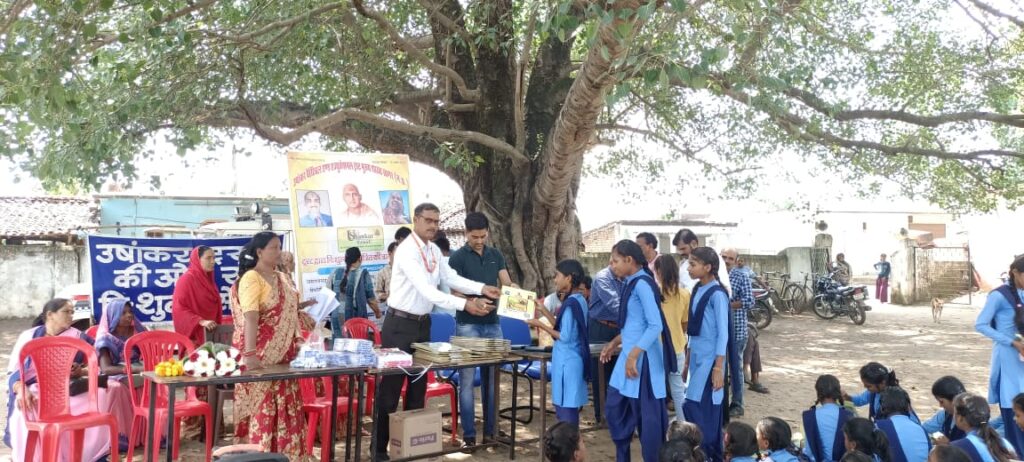 माधमिक स्कूल के 60 बच्चो को पैड का वितरण हुआ साथ ही स्कूल में क्विज प्रतियोगिता के माध्यम से 5 स्कूल बैग और 5 वाटर बॉटल का वितरण किया गया।आगनवाड़ी और स्कूल के सभी बच्चो को केले और बिस्किट का वितरण किया गया,उक्त कार्यक्रम में आगनवाड़ी कार्यकर्ता , सरपंच ,सचिव,स्कूल टीचर और स्कूल प्रिंसिपल की उपस्थित रही।आगनवाड़ी कार्यकर्ता द्वारा व्यंजन प्रदर्शनी का आयोजन भी किया गया..ट्रस्ट की ओर से उक्त आयोजन में सदस्य श्री अमित विश्वकर्मा, अर्पणा खरे विश्वकर्मा,राम जी शर्मा उपस्थित रहे|