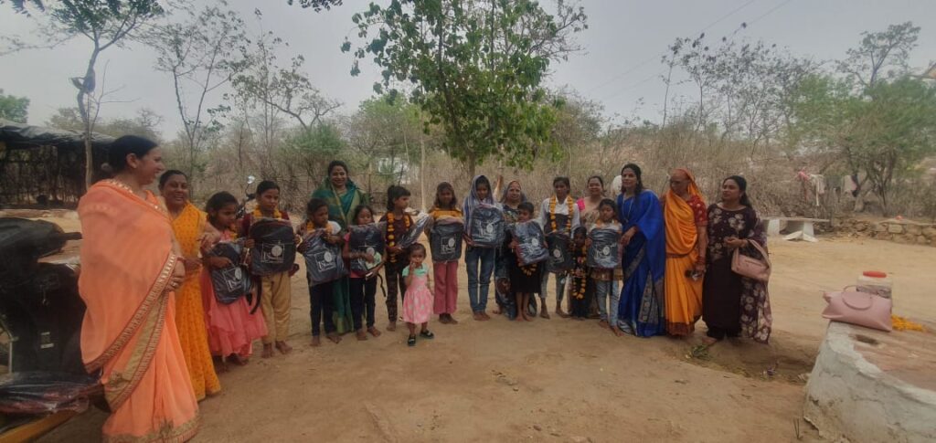 उशांकर चेरिटेबल ट्रस्ट की ट्रस्टी डॉ . समिता गोगोरिया द्वारा दिनांक 27/04/2024 को पंचकूप के पास जिला दतिया में ग्रामीण 15 बच्चियों को ट्रस्ट की और से स्कूल बैग का वितरण किया गया। इस कार्यक्रम में सदस्य श्री मती शकुंतला जी , नीलम सोनी, राखी गोगोरिया उपस्थित हुए। ट्रस्टी एवं सदस्य द्वारा बच्चों को बिस्किट के पैकेट एवं भोजन स्वयं अपनी ओर से वितरित किया गया।