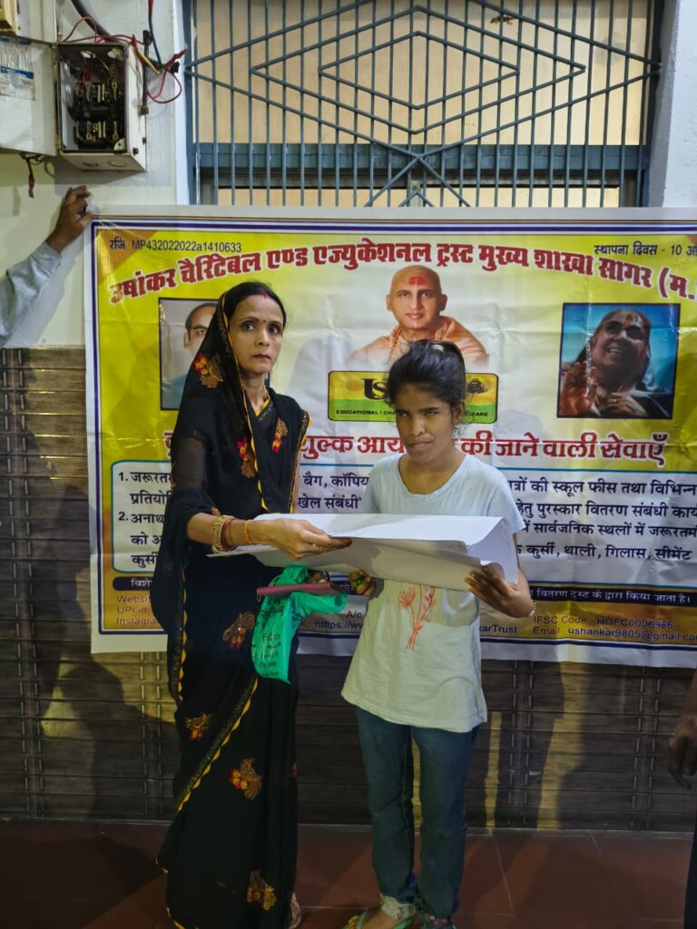 दिनांक 29/08/2025 को उषांकर चेरिटेबल व एजुकेशनल ट्रस्ट मुख्य शाखा जिला सागर की ओर से ट्रस्ट के नये सदस्य श्री अरुण गुप्ता एवं श्रीमती मुक्ता गुप्ता कैम्प प्रभारी कर्वी के द्वारा कार्यक्रम का आयोजन कर्वी जिला चित्रकूट उ.प्र. में संचालित दृष्टि नेत्रहीन बालिका विद्यालय (संचालक श्री शंकर लाल पहारिया) पर कार्यक्रम आयोजित किया गया कार्यक्रम में ट्रस्ट की ओर से उपस्थित 100 बालिकाओ के बीच स्टेशनरी(200 ब्रेल पेपर , 25 स्टाइल्स स्पेशल पेन ) का समान वितरण किया गया तथा सभी बच्चों एवं स्टाफ को खाद्य सामग्री के रुप मे सदस्य मुक्ता एंड अरुण गुप्ता जी की ओर से बिस्किट एवं सहयोगी रचना एंड जीतेश बरसईयाँ जी की ओर से केले का वितरण किया गया । बच्चे ट्रस्ट के द्वारा सामग्री पाकर एवं सांस्कृतिक कार्यक्रम कर बहुत प्रसन्न हुए। कार्यक्रम मे उपस्थित सहयोगी श्री जितेष बरसईयाँ एवं श्रीमती रचना बरसईयां की ओर से दृष्टि नेत्रहीन बालिका विद्यालय के संचालक श्री शंकर लाल पहारिया जी को बच्चों के हित के लिए ₹1100 रुपये की राशि दान की गई। ट्रस्ट परिवार सदस्य श्रीमती मुक्ता एंड अरुण गुप्ता उपस्थित सहयोगी श्रीमती रचना एंड जितेष बरसईयाँ,नमन गुप्ता, श्री शंकर लाल पहारिया जी का आभार व्यक्त करता हैं।