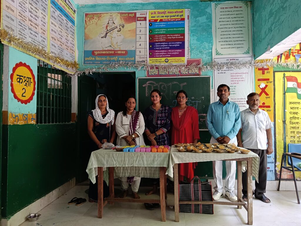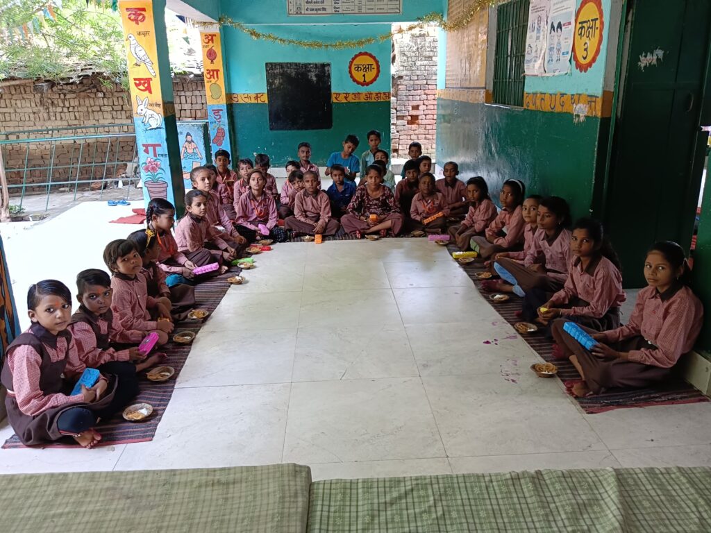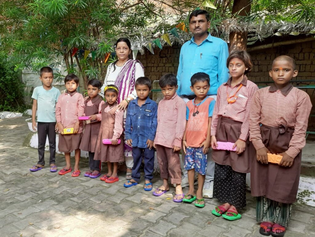 नवरात्री के अवसर पर संस्था की ओर से 9 बालिकाओं को चप्पल पहनाकर सम्मानित किया गया और श्रीमती कविता चौधरी और श्रीमती सरोज देवी की तरफ से 32 बच्चों को दही जलेबी बॉक्स पेंसिल रबर कटर वितरित किया गया इस मौके पर सक्रिय सदस्य श्री सत्येन्द्र गुप्ता श्रीमती सपना गुप्ता डॉ राम नेवाज सिंह श्रीमती सुनीता सिंह श्रीमती नीलम श्री पवन कुमार सिंह उपस्थित रहे