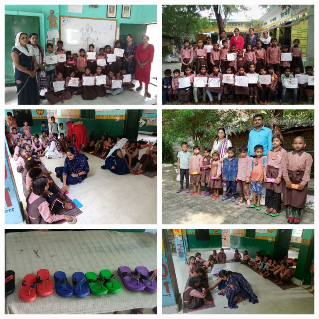 नवरात्री के अवसर पर संस्था की ओर से 9 बालिकाओं को चप्पल पहनाकर सम्मानित किया गया और श्रीमती कविता चौधरी और श्रीमती सरोज देवी की तरफ से 32 बच्चों को दही जलेबी बॉक्स पेंसिल रबर कटर वितरित किया गया इस मौके पर सक्रिय सदस्य श्री सत्येन्द्र गुप्ता श्रीमती सपना गुप्ता डॉ राम नेवाज सिंह श्रीमती सुनीता सिंह श्रीमती नीलम श्री पवन कुमार सिंह उपस्थित रहे