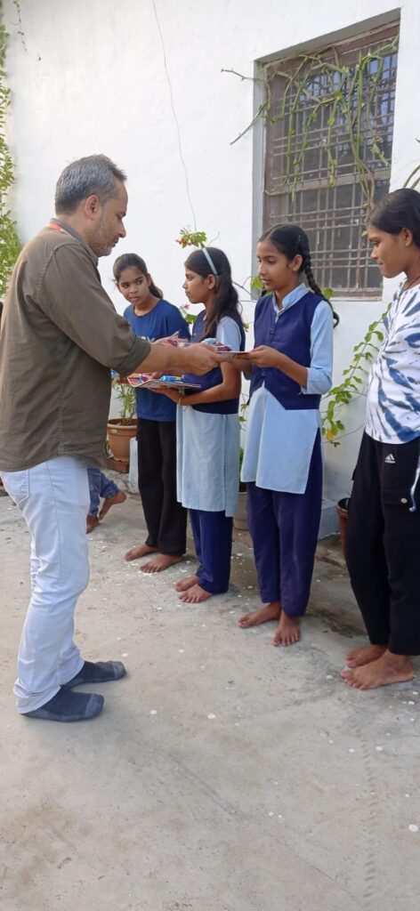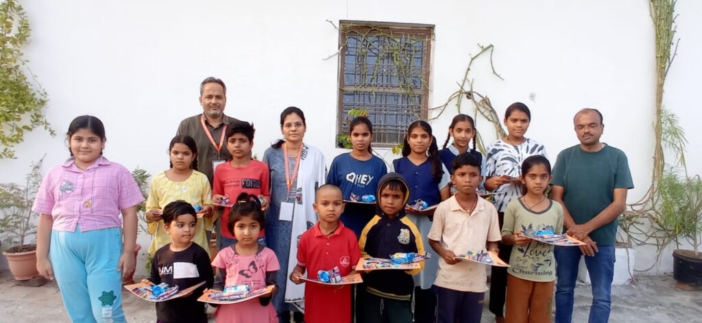 ऊषांकर चैरिटेबल एंड एजुकेशनल ट्रस्ट मुख्य शाखा सागर की ओर से दतिया में चल रही निःशुल्क कोचिंग पर आकर ट्रस्ट की सदस्य श्री विनोद रतनानी प्रीति रतनानी ,श्री हरीश रतनानी रति रतनानी ने आकर अपने पिताजी की पुण्यतिथि पर बच्चों को बिस्किट फुलझड़ी और ड्राइंग कॉपी कलर बॉक्स बाटे सभी बच्चे बहुत प्रसन्न हुए